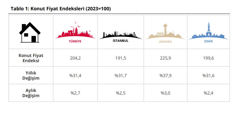 Konut fiyatlarında yılın ilk reel fiyat artışı gerçekleşti