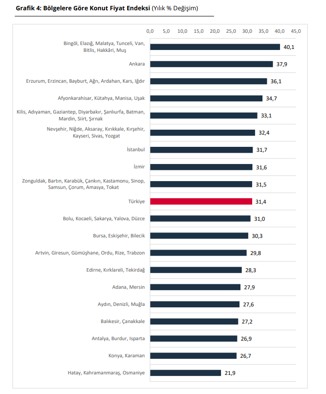 Kasımda yıllık bazda yüzde 31,4 artan konut fiyatları, reel olarak ise yüzde 0,3 yükseliş kaydetti. Böylelikle konut fiyatlarında yılın ilk reel artışı gerçekleşti.