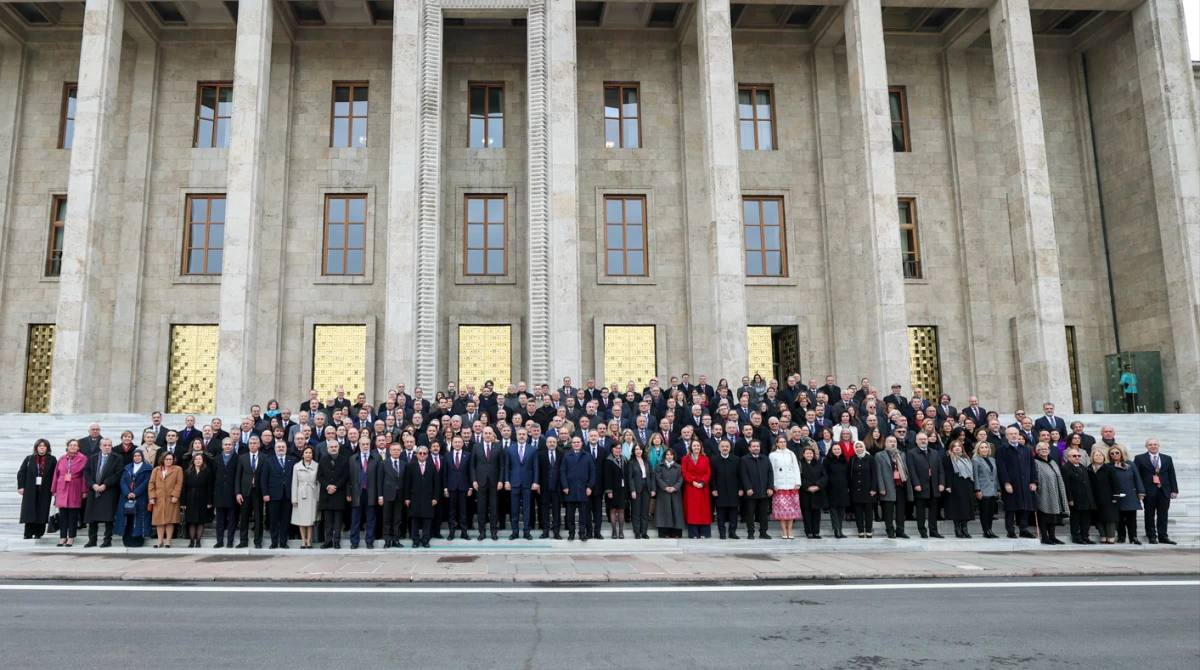 Programın ardından TBMM Başkanı Kurtulmuş, Dışişleri Bakanı Fidan ve büyükelçilerle Şeref Merdivenlerinde fotoğraf çektirdi.
